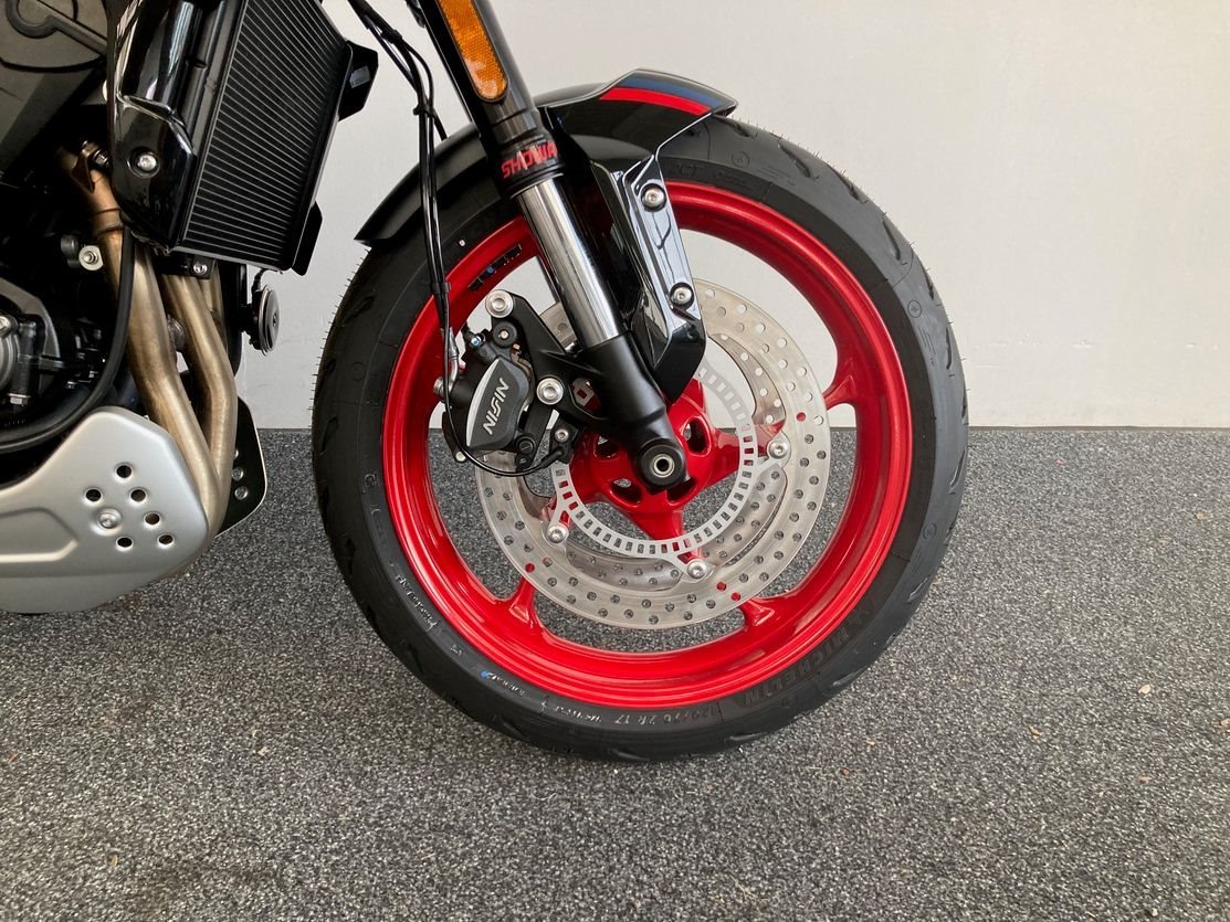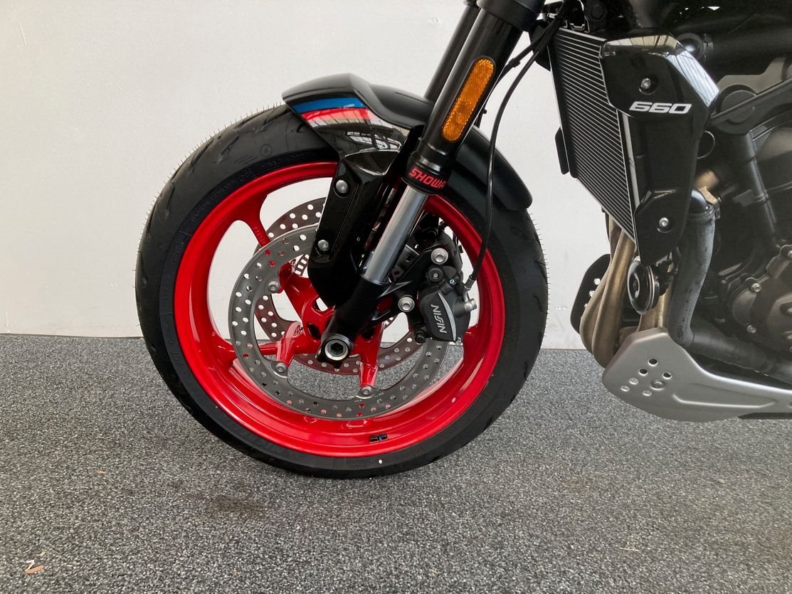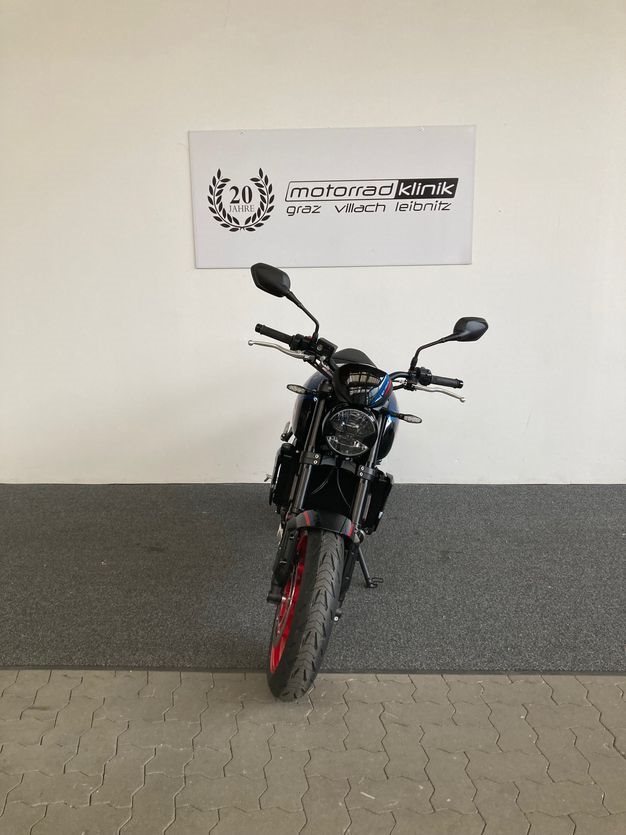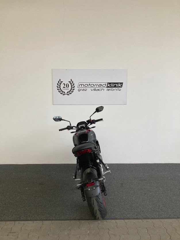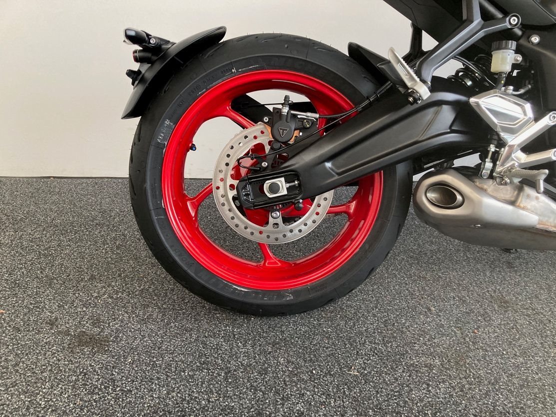 Trident 660 Triple Tribute mit ABS, Quickshifter, Tempomat, Markante neue Optik und Räder in Diablo Red, Sport-Fahrmodus, Optimiertes Kurven ABS und Traktionskontrolle, My Triumph Konnektivitätssystem, 805mm Sitzhöhe, 14 L Tankvolumen,190 kg fahrfertig, 16.000km Serviceintervall.